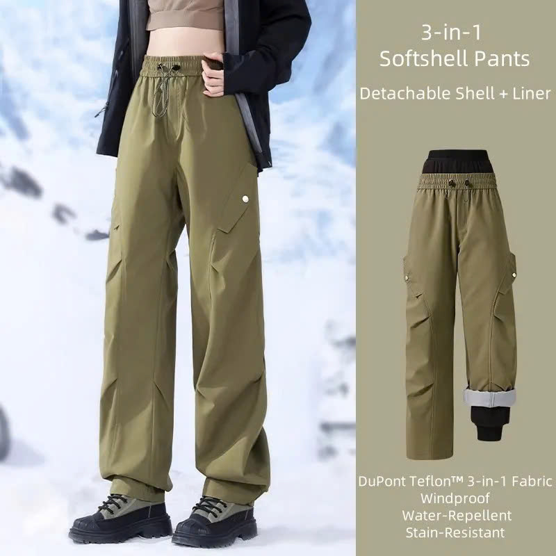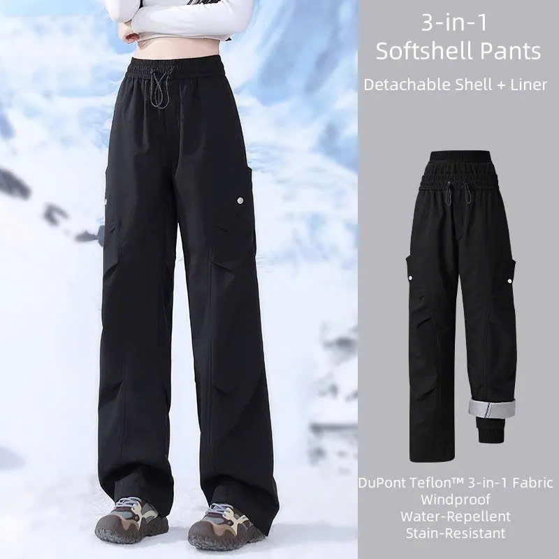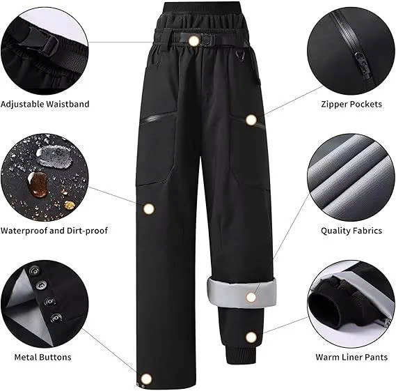 These 3-in-1 dual-layer pants deliver unbeatable versatility for winter adventures. The outer layer offers triple protection—waterproof, windproof, and stain-resistant—keeping you dry and shielded on the slopes. Inside, the ultra-warm fleece liner traps heat and doubles as cozy loungewear. Wear both layers together for extreme cold or separate them for milder days. With an adjustable waist, multi-pocket storage, and reinforced cuffs designed for snow boots, these pants are built for skiers, snowboarders, travelers, and anyone who needs reliable comfort from mountain peaks to city streets.