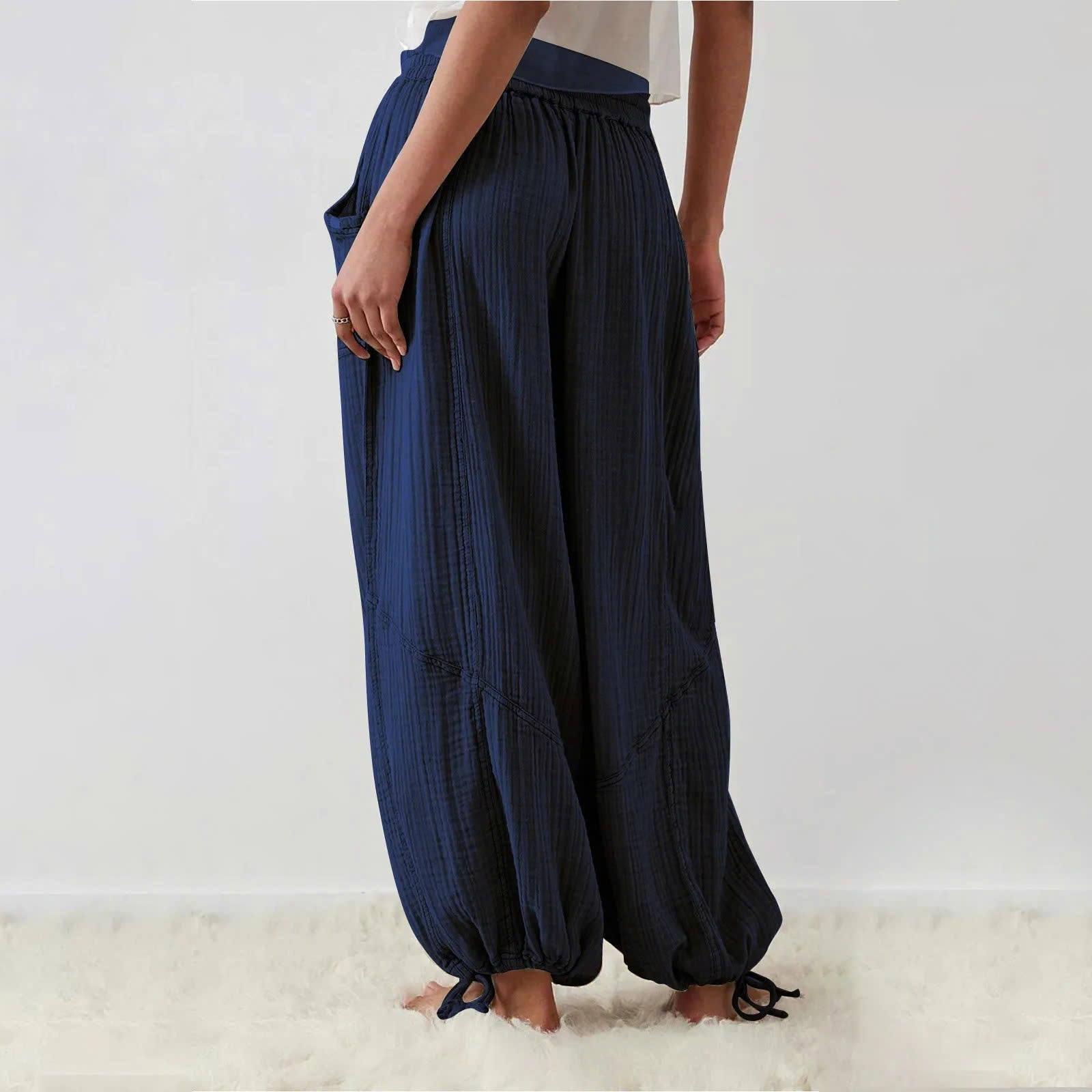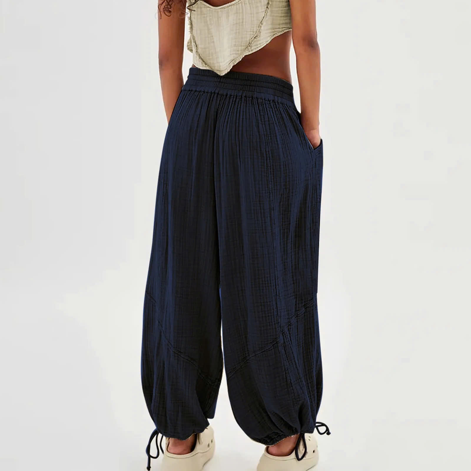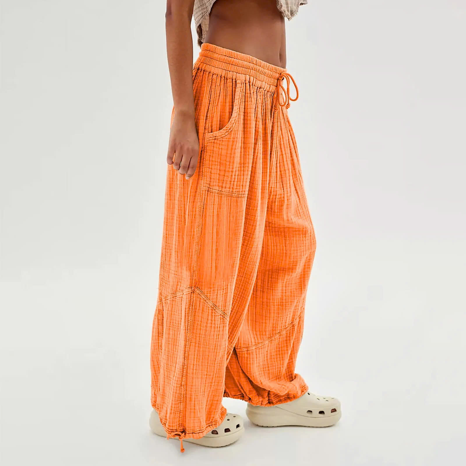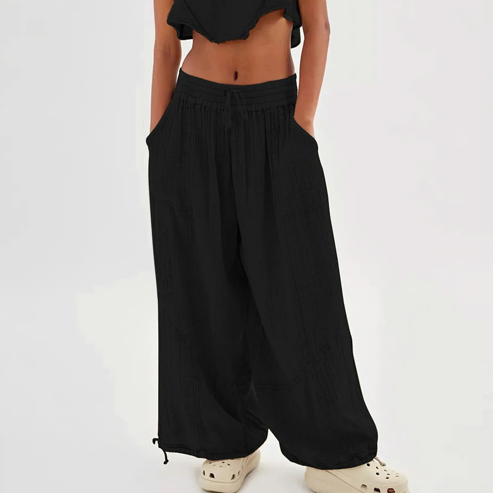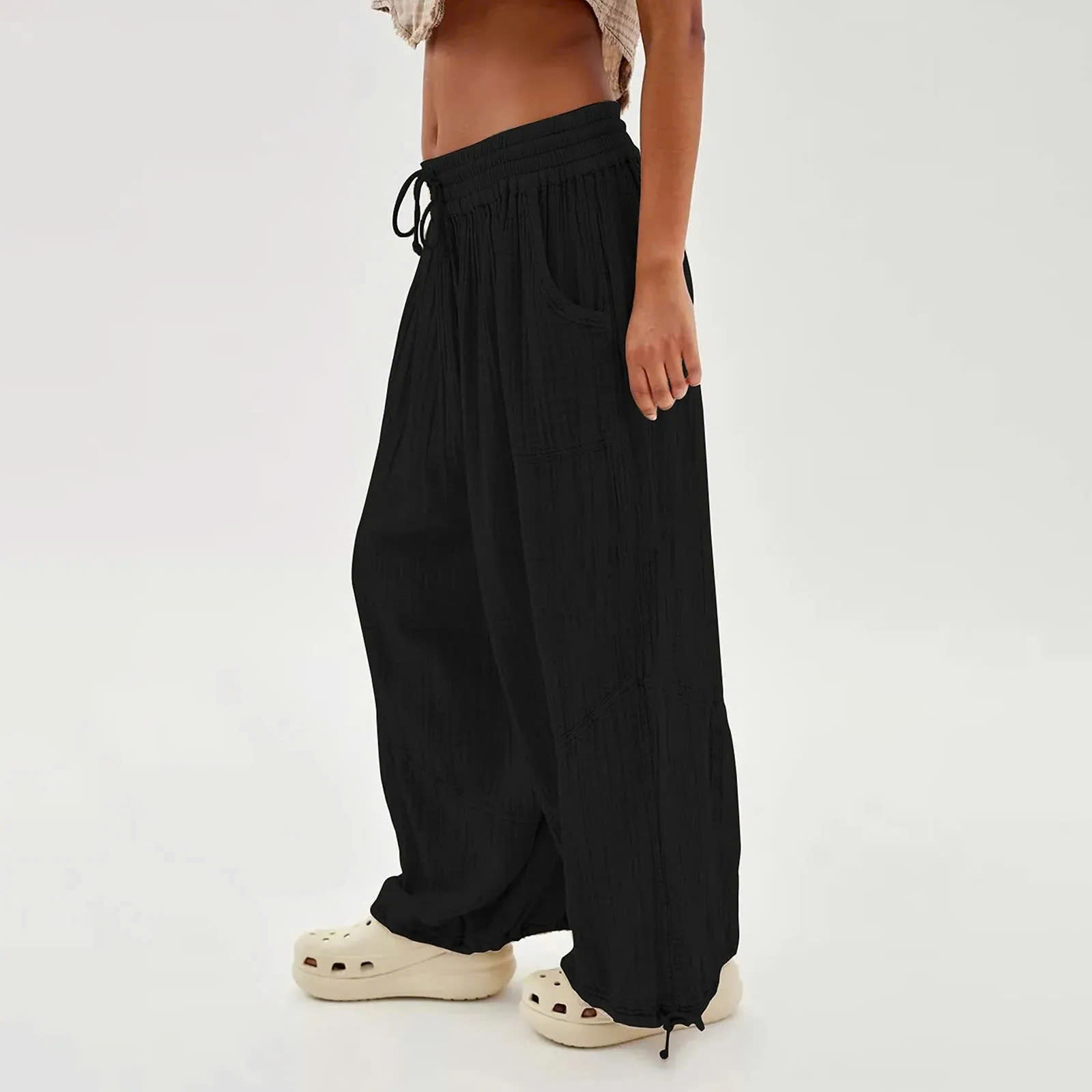 Wrap yourself in comfort with our baggy high waist pants, featuring a relaxed fit that drapes effortlessly around your legs, making you feel cozy. Meanwhile, we select the super soft fabric to keep you cool and breathable for all-day wear in summer.