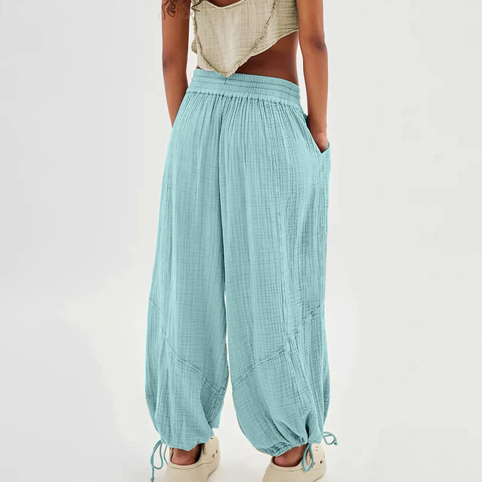 Elastic waistband matches drawstring design, making it easy to adjust the tightness and creating a comfortable and flexible fit. The adjustable lace up ankle can easily roll up the pants to create different styles.