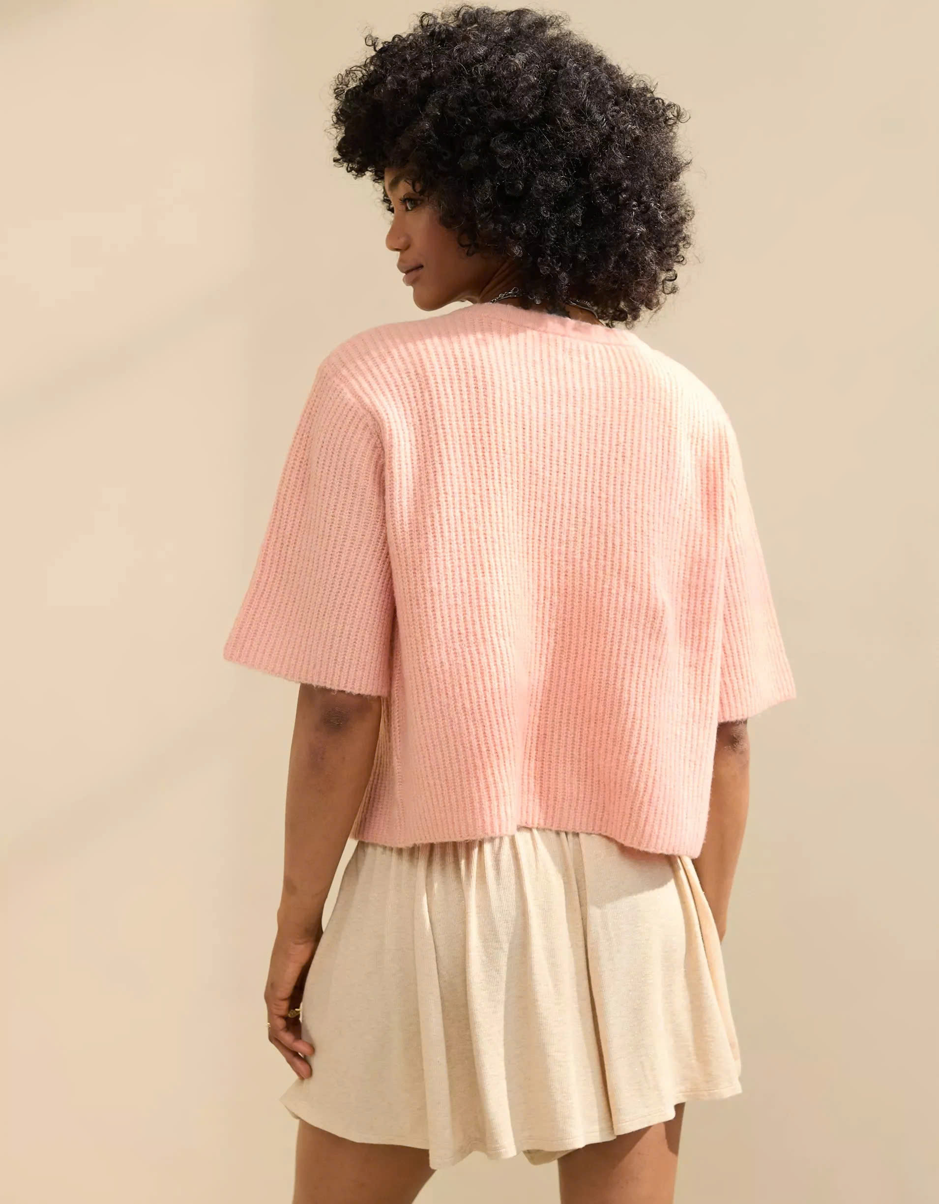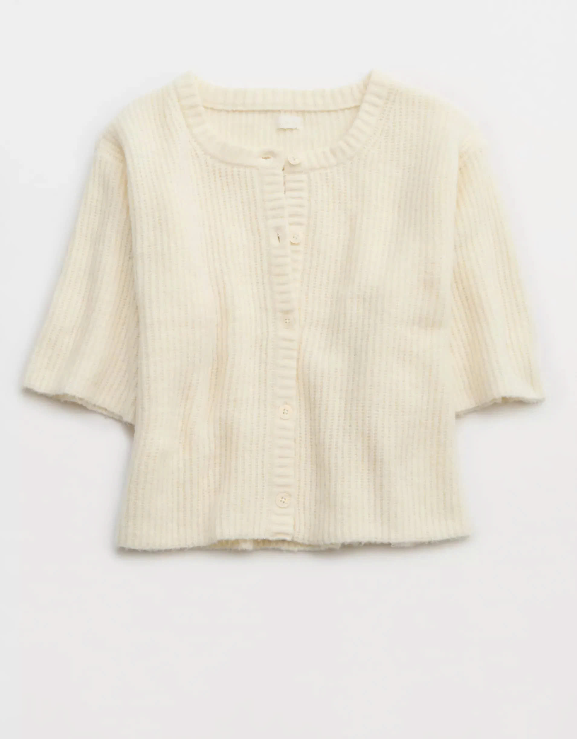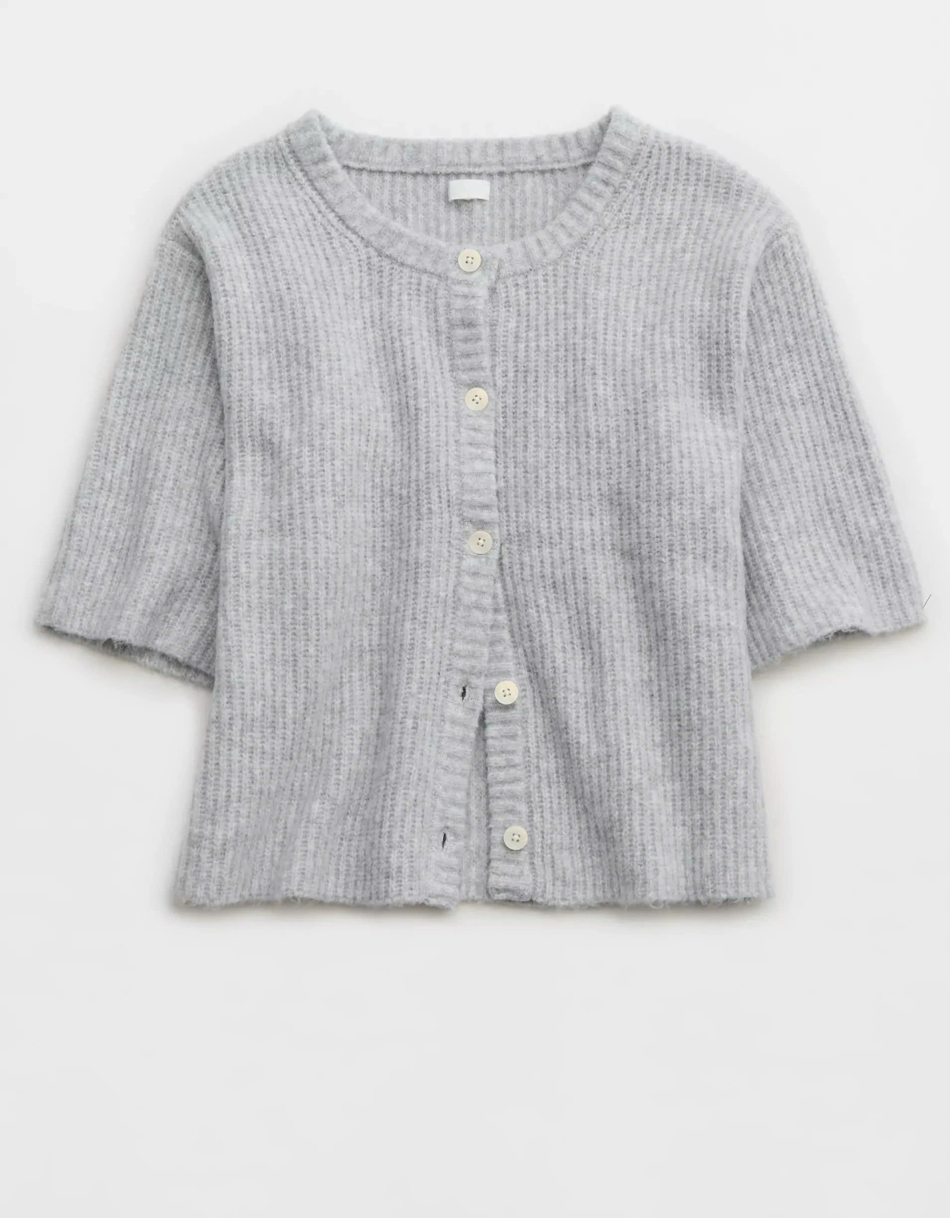 Designed with a modern silhouette, this cardigan features short sleeves, making it perfect for layering during transitional weather.