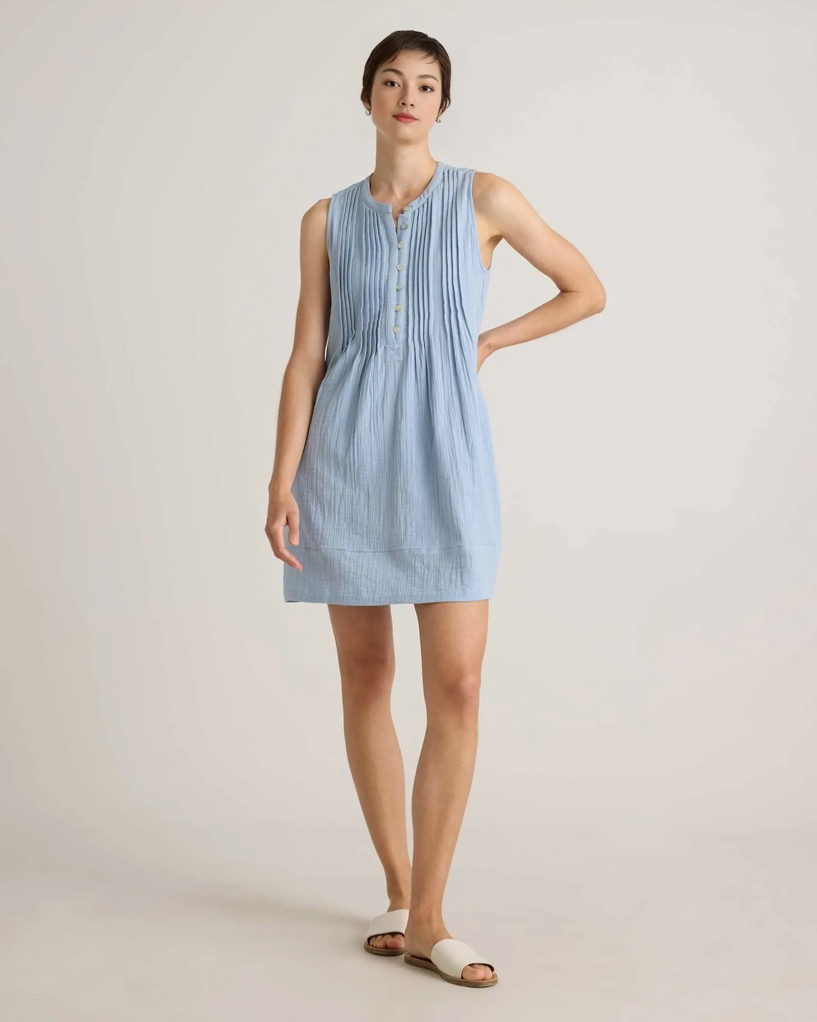 Made from soft, breathable organic cotton gauze, this sleeveless dress has a comfortably relaxed fit designed to keep you cool on even the hottest summer days. Bonus: it’s got pockets!