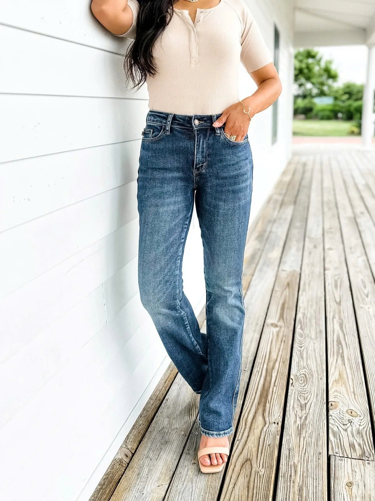 They have hip-hugging stretch…your booty has never looked so fab. With a mid-rise, these jeans hit exactly the right spot on your waist and will stretch as you wear them.