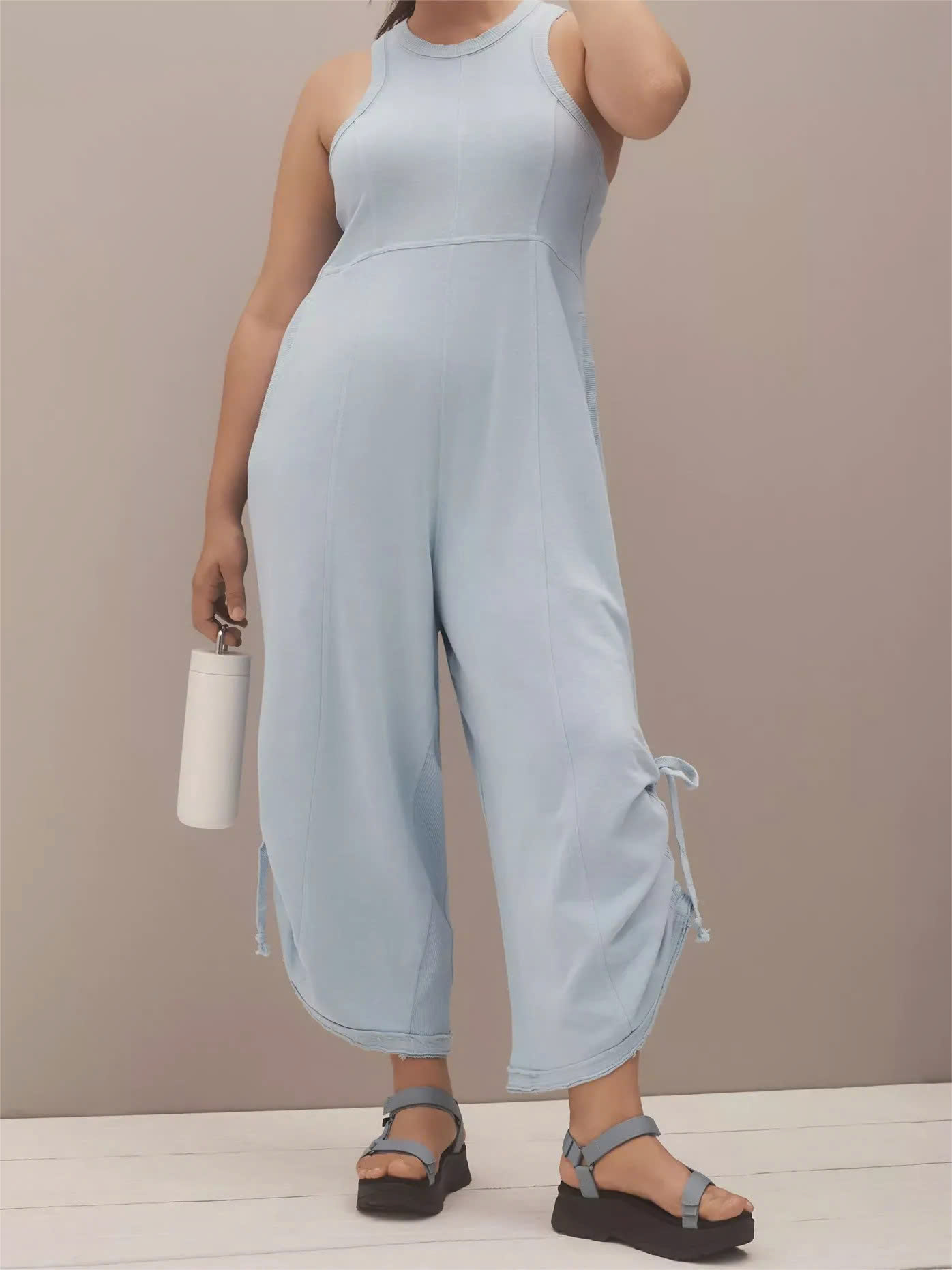Comfort Fabric: Made primarily from breathable cotton, with a hint of elastane trim for stretch, this jumpsuit offers an exceptionally soft feel that moves with you effortlessly.