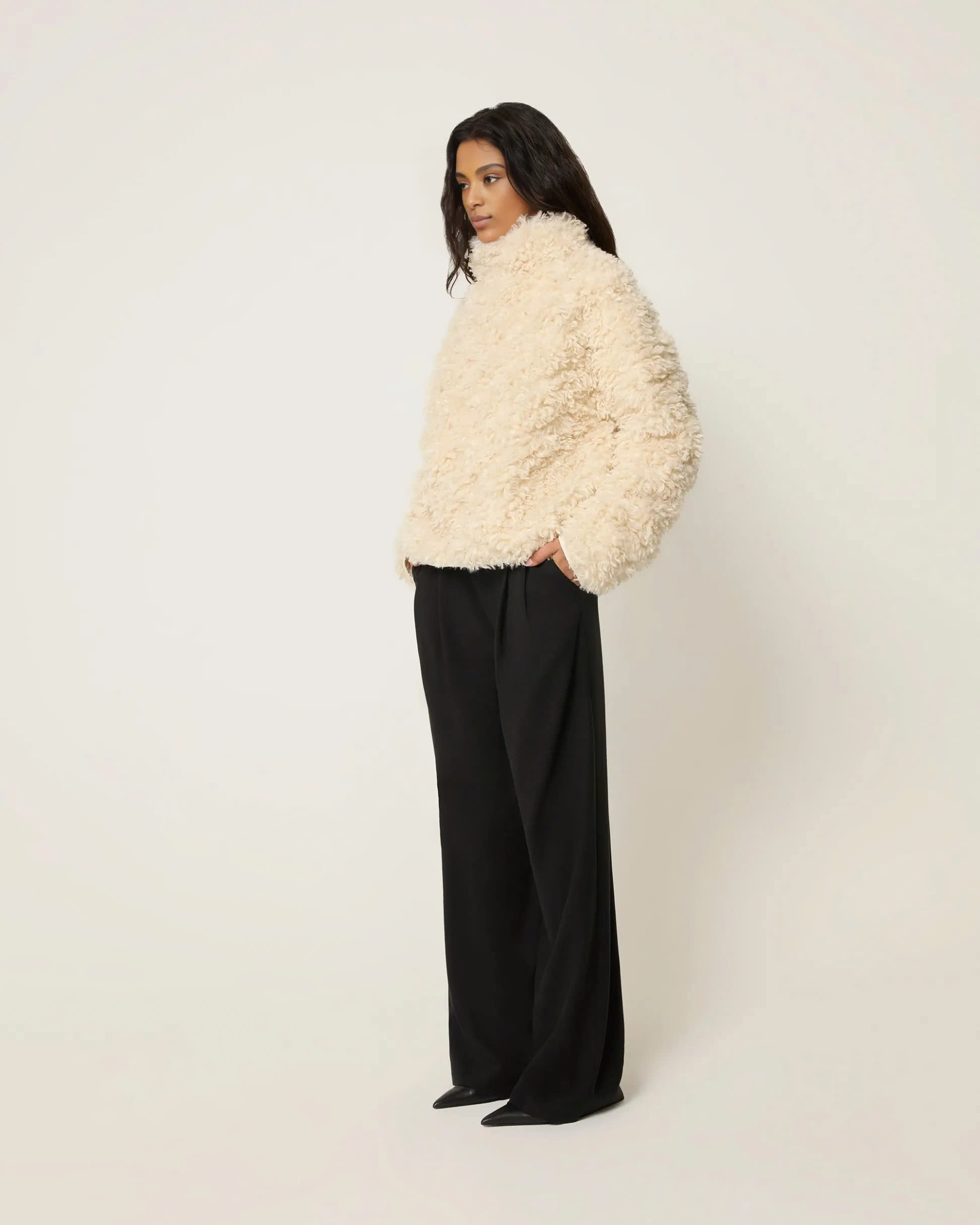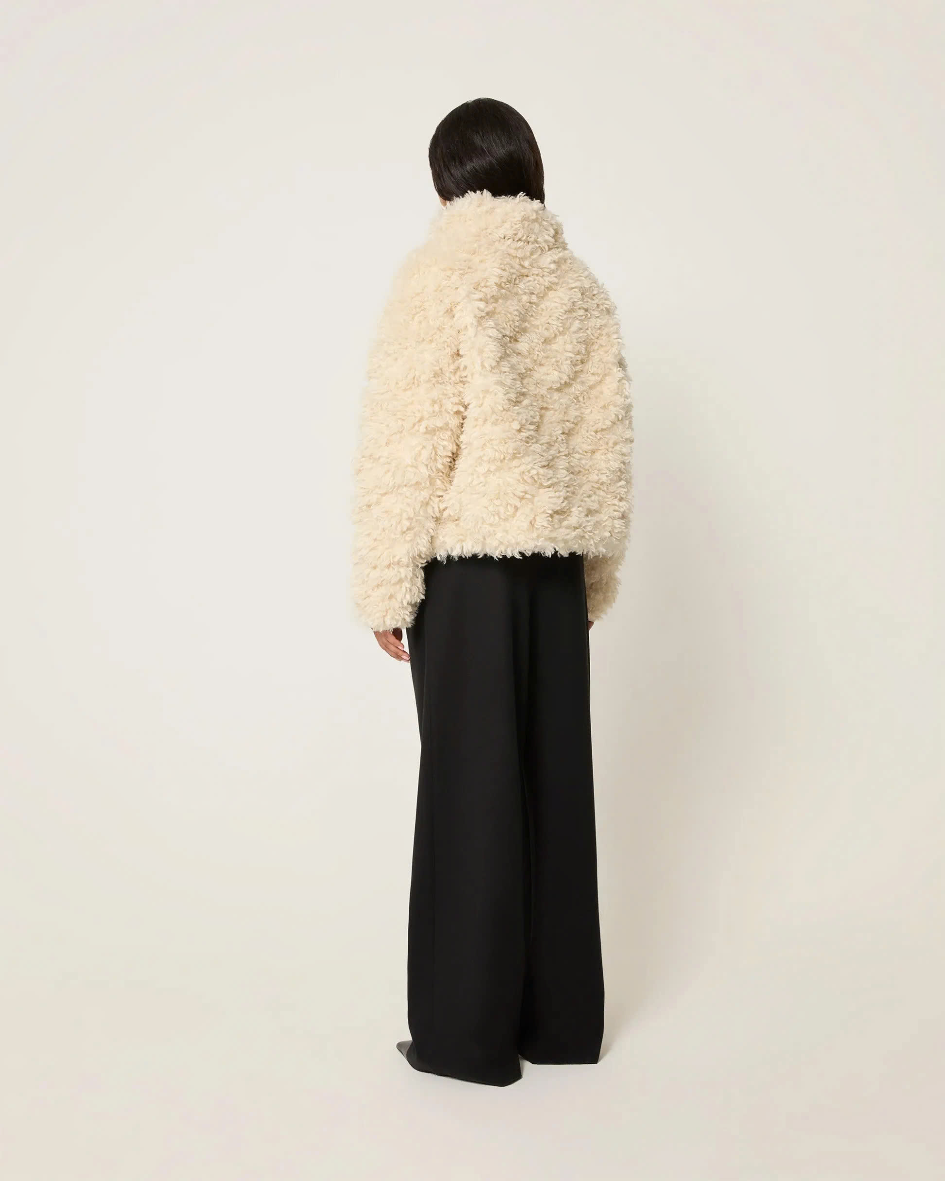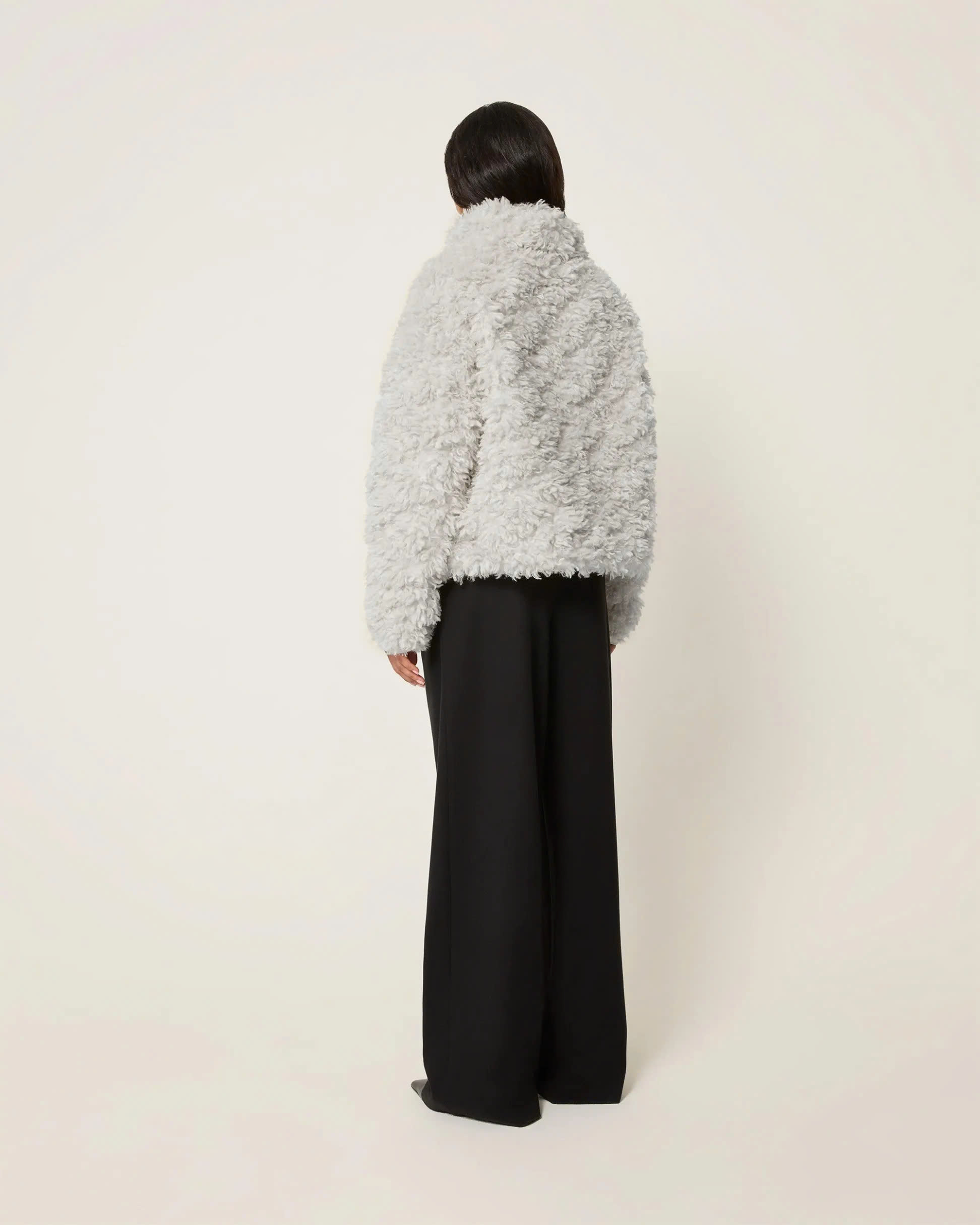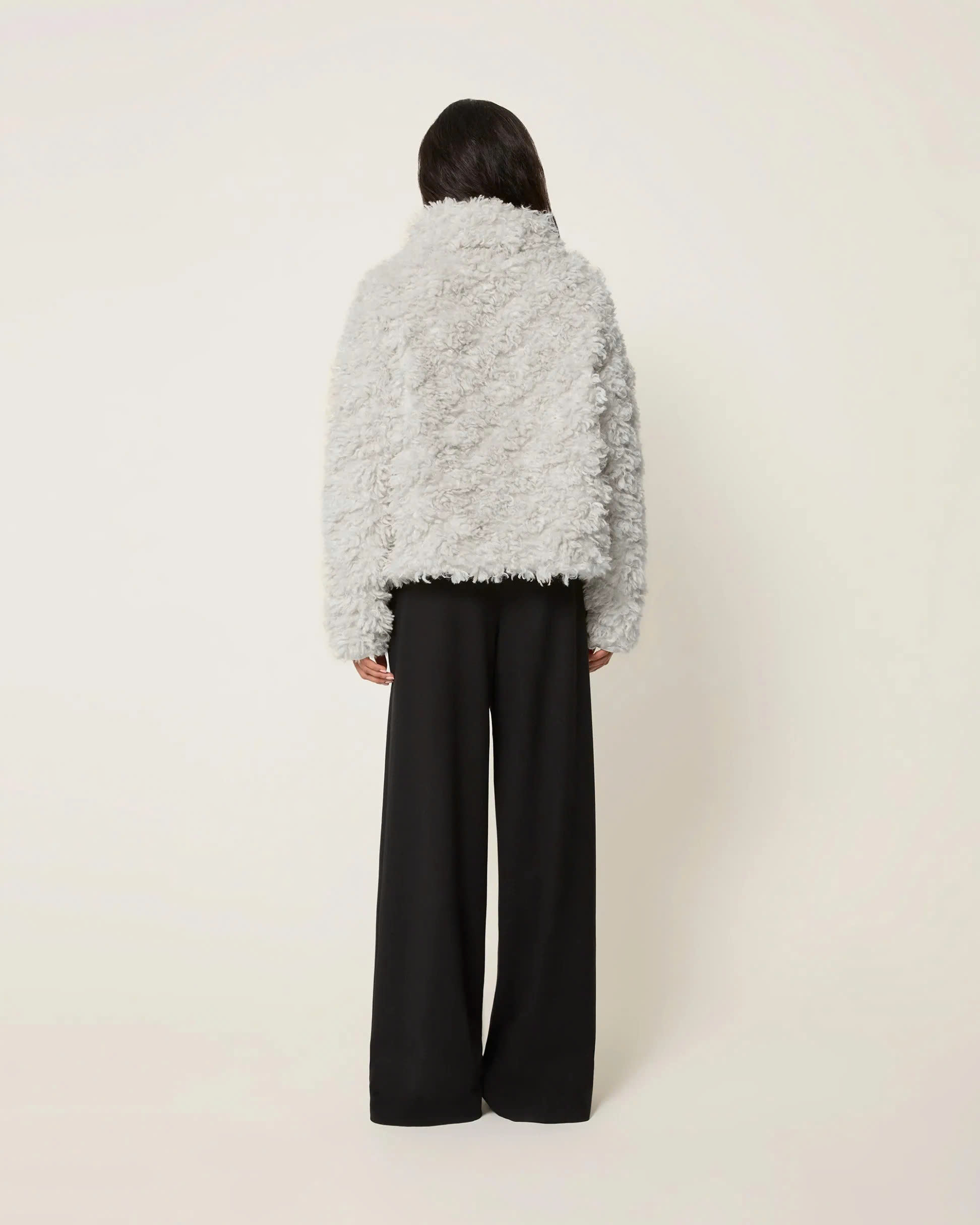 The fluffy treatment at the neckline is even more delicate, complementing the overall fluffy texture, allowing you to exude charm from both the front and the side.