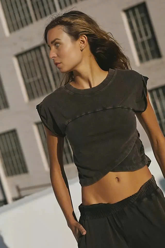 cropped muscle tee top with seaming detail