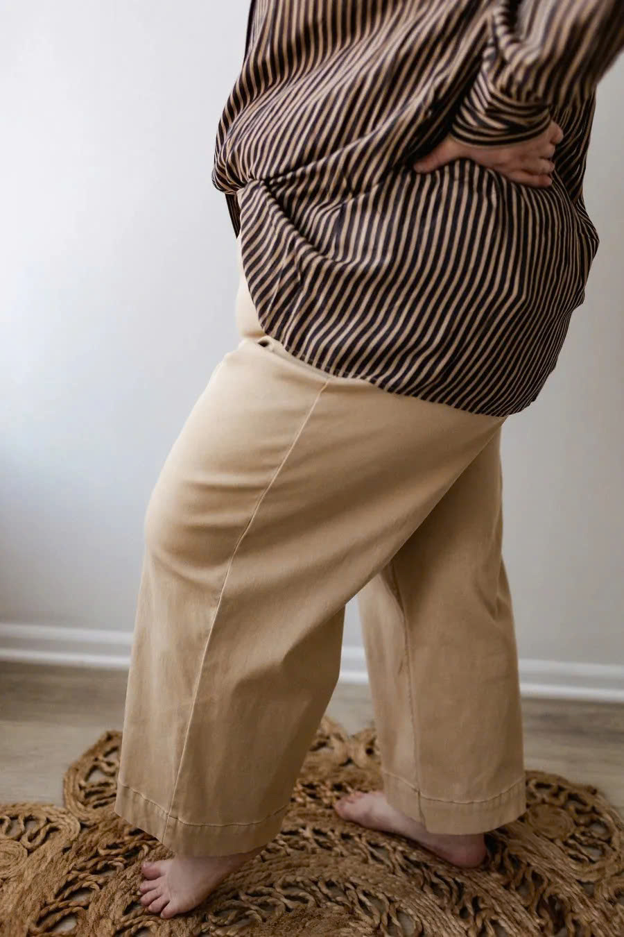 Experience unrivaled comfort and smoothness with our 4-way stretch, velvety soft twill fabric. The relaxed hip and thigh cut gracefully transitions into flared legs, epitomizing comfort and style as well.
