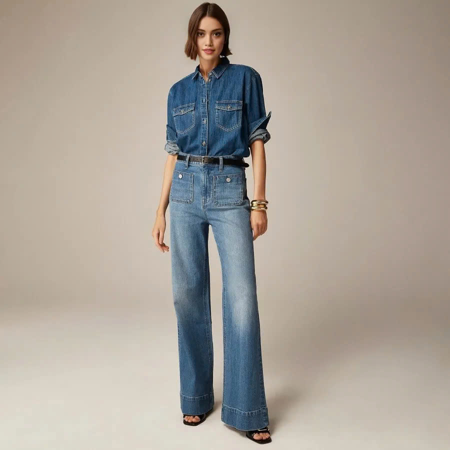 Crafted from premium denim fabric, our Sailor Wide Leg Trouser ensures durability and comfort throughout the day. To maintain its pristine condition, we recommend machine washing in cold water and air drying for best results.